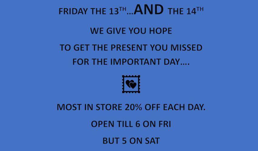 We're giving you hope to get the present you missed for the Valentines Day! Most in-store items...